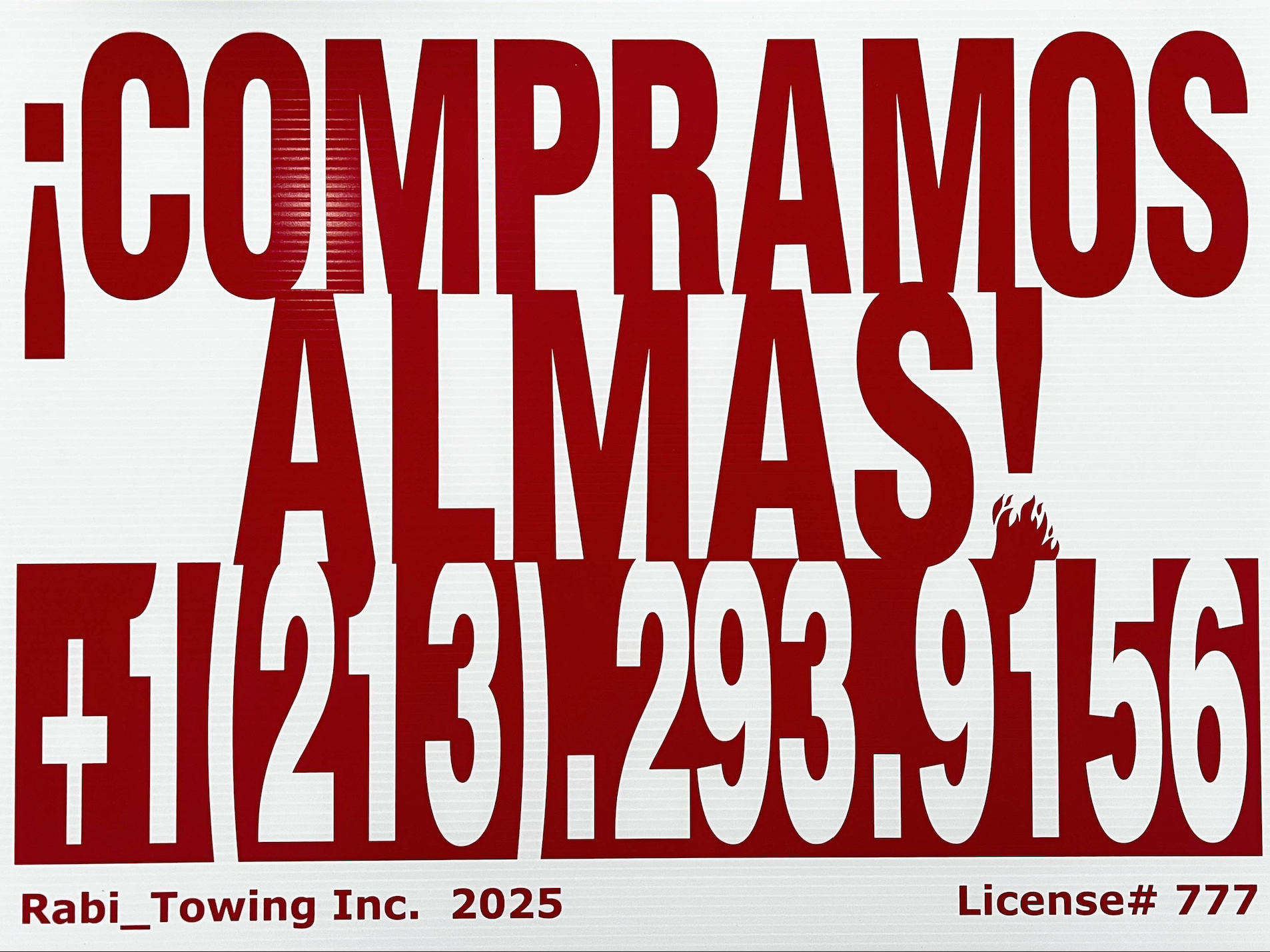Spanish "WE BUY SOULS" Street Sign on Corrugated Coroplast